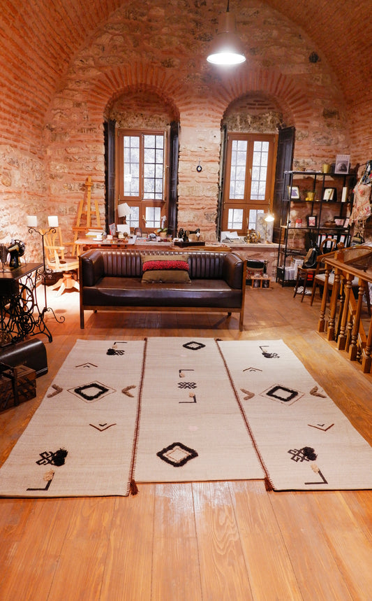DotLineArc İç Mimarlığın Bodrum'da tasarlamış olduğu evin merkezinde Zilli Kilim.