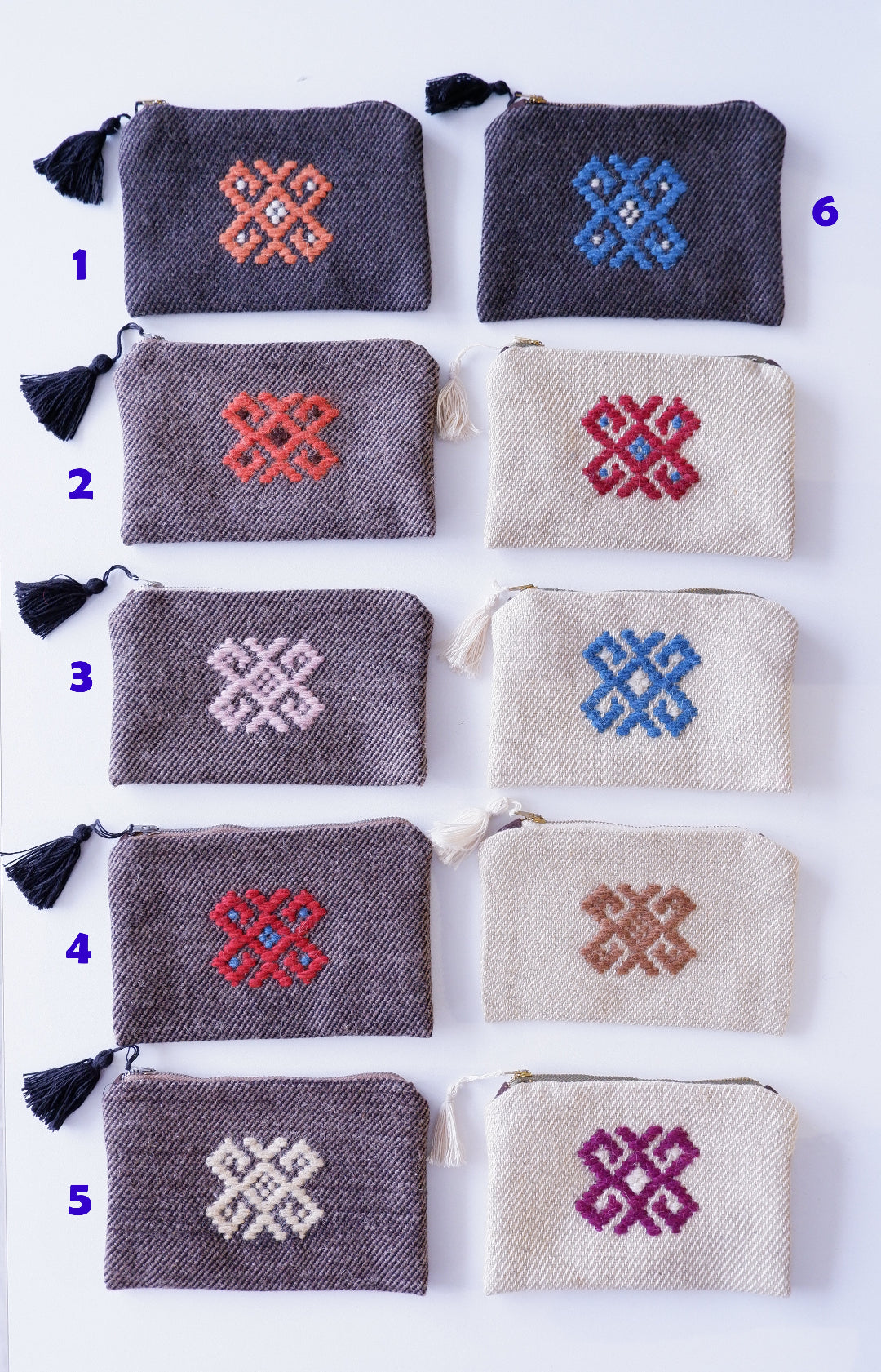 - Yün iplikler; ceviz kabuğu, hibiskus, meşe palamudu vb. ürünlerden üretilen kök boyalar ile renklendirilmiştir.
